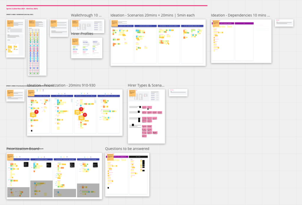 Before diving into user research and testing, we ran a series of collaborative design workshops with cross-functional teams. The goal was to map out different hirer profiles, align on assumptions, and prioritise what must be tested or validated.